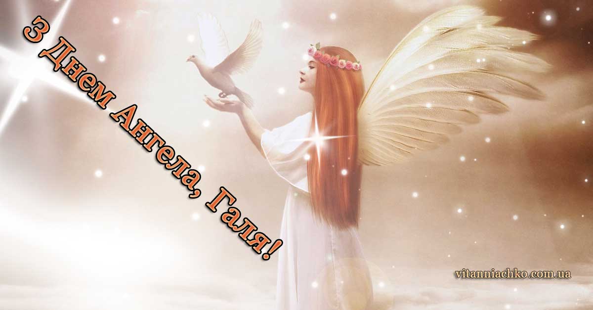 Дорога Галя, з Днем Ангела тебе! Бажаю, щоб твій ангел-охоронець завжди був поруч, допомагав у складних моментах і відчував твоє щире задоволення від кожної перемоги в житті. Нехай здоров'я, любов, достаток і щастя супроводжують тебе завжди.